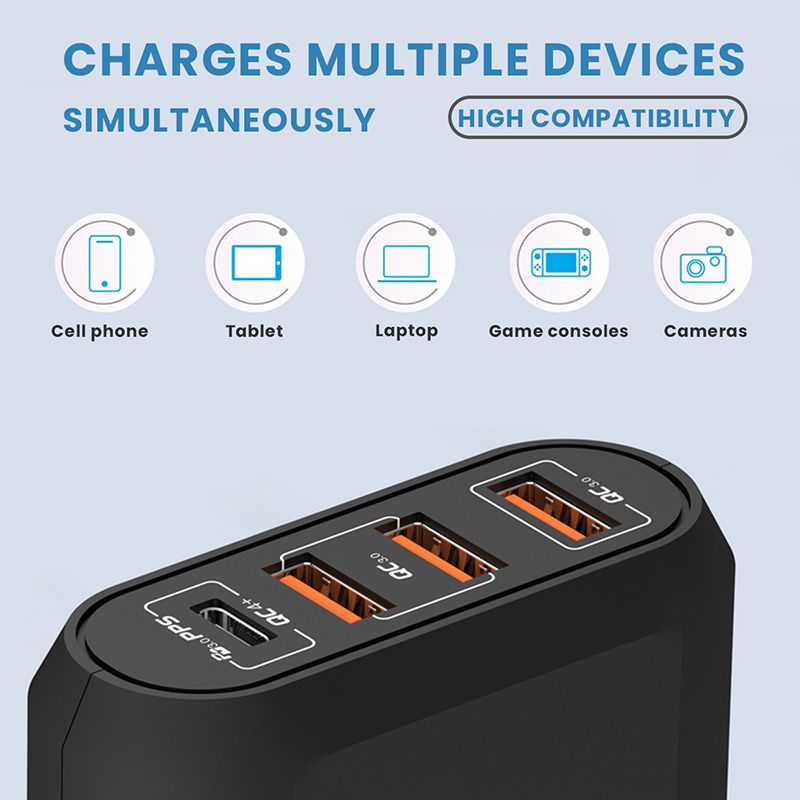 • Multi-Device Charging: Charge up to 4 devices simultaneously, with smart technology that adjusts power based on the device’s needs.